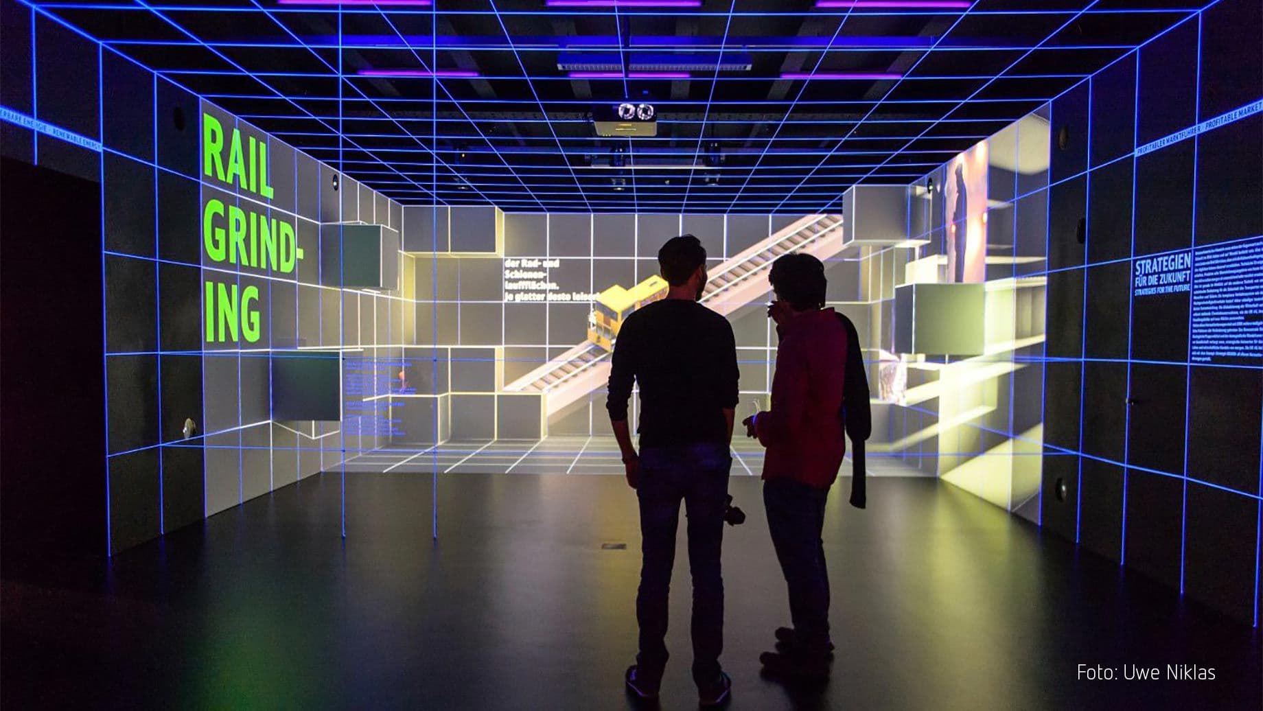 As part of the permanent exhibition "Setting the course for the future" at the Deutsche Bahn Museum in Nuremberg, we were involved in the realization of the "strategy room". The future development of the DB Group is explained by video overlays, playful data graphics and striking textual information. To this end, we developed a software system that deliberately incorporates the spatial structures.