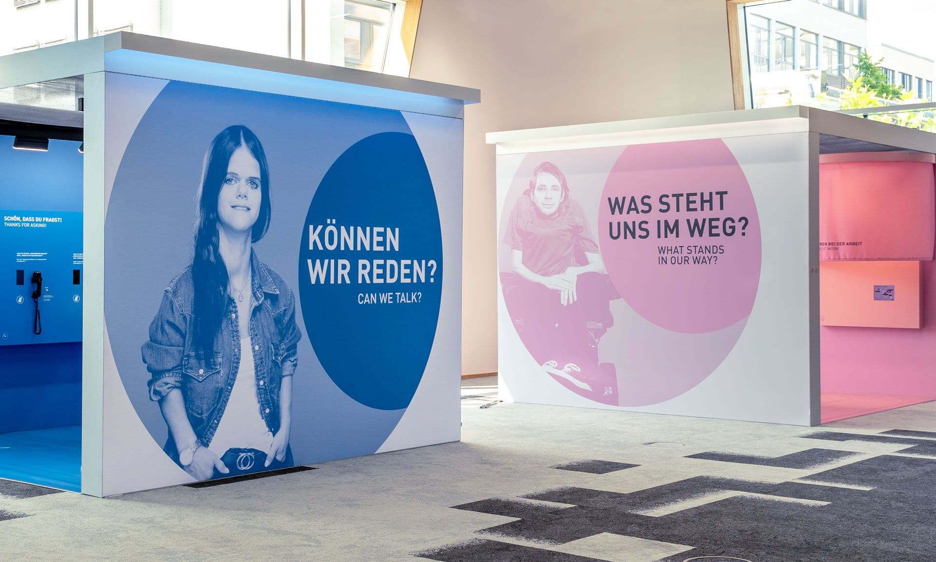 Innoklusio is a traveling exhibition that draws attention to the topic of inclusion in the working environment at various company locations.