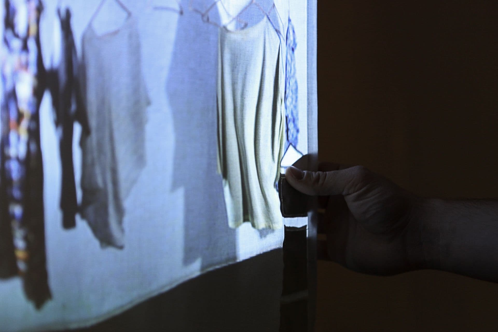 Manchmal muss man neue Wege gehen um Produkte in das richtige Licht zu setzen. Konzeptioneller Ausgangspunkt war die Garderobe »Swing-A-Ding«. Als Projektions- und Interaktionsfläche diente ein über die Kleiderhaken gehängtes Kleidungsstück mit leitfähigem Stoff. Durch intuitive Touch-Gesten kann durch das gesamte Portfolio geblättert werden. Cloth-Portfolio fand im Rahmen des Assembly Design Festivals im Grazer Designmonat großen Anklang beim Publikum.